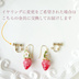 ******* こちらはイヤリングへ変更可能商品です ****** 購入時にご連絡いただければ、ねじバネ式イヤリングに 変更してお送りいたします。 ******************************************************* 赤とピンクがグラデーションになった苺のピアスです。 葉っぱと花は立体的に作られていて高級感があります。 苺パーツの大きさ 1.5 cm x 1 cm ピアスフックから下がった部分の長さ 3 cm ☆ お箱に入れ、リボンをかけてお届けいたします ☆ 当店のフルーツアイテム一覧はこちらから https://roserain.booth.pm/item_lists/rw9TQdjn ୨୧・・・・・・・・・・・・୨୧・・・・・・・・・・・・・୨୧・・・・・・・・・・・・・୨୧・・・・・・・・・・・୨୧ 当店のデフォルトの商品配送方法は、追跡番号付きの 郵便局のクリックポストとなっております。 ポストインが不安な方は差額分をプラスして対面手渡しの レターパックプラスに変更もできます。 差額分専用ページ https://roserain.booth.pm/items/6104624 どちらも発送後、追跡番号をお知らせいたします。 ***土日祝は業務をお休みさせていただきます*** ୨୧・・・・・・・・・・・・୨୧・・・・・・・・・・・・・୨୧・・・・・・・・・・・・・୨୧・・・・・・・・・・・୨୧