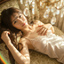【プロンプトはこちら】 📷A photorealistic close-up portrait of a young and beautiful Japanese woman lying on her back on a luxurious vintage-style sofa, captured from a steep top-down angle.She has long, wavy, softly curled hair spread naturally around her head, catching the warm sunlight with a silky shine.She wears a glossy, delicate lace camisole that softly enhances her naturally full bust.One hand is gently placed over her chest, lightly pressing against the camisole, subtly emphasizing the rich curves in an elegant and natural way.Her other arm rests relaxed beside her head, creating a casual yet sensual pose.She gazes softly up at the camera with a serene, slightly inviting expression.A massive, ornate crystal chandelier hangs freely between the camera and the woman, heavily blurred into soft, shimmering bokeh with faint rainbow flares, filling the foreground with luxurious light.Warm golden sunlight streams through lace curtains in the background, casting intricate and dramatic shadow patterns over her body, her dress, and the richly textured vintage sofa.The overall atmosphere is cinematic, dreamy, and richly elegant, evoking a perfect balance between delicate sensuality and pure beauty.(hanging chandelier, heavy soft bokeh, rainbow light flares, long wavy hair, hand on chest, photorealistic, cinematic lighting, warm natural light, dramatic light and shadow, top-down close-up shot, ultra-detailed, masterpiece, 8K)*