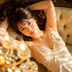 【プロンプトはこちら】 📷A photorealistic close-up portrait of a young and beautiful Japanese woman lying on her back on a luxurious, vintage-style sofa, captured from a steep top-down angle.She has long, wavy, softly curled hair that spreads naturally around her head, catching the warm light with a soft, silky shine.She wears a glossy, delicate lace camisole that fits naturally but with a slightly fuller and more voluptuous bustline.Her arms are gracefully stretched above her head, and she gazes softly at the camera with a calm, inviting expression.A massive, ornate crystal chandelier hangs freely from the ceiling between the camera and the woman, creating a dreamy, heavily blurred foreground filled with shimmering, glowing lights.The chandelier appears as a luxurious, softly sparkling haze, without sharp focus.Warm golden sunlight filters through lace curtains, casting delicate shadow patterns across her face, body, and the vintage sofa, creating a dramatic, cinematic mood.(hanging chandelier, heavy foreground bokeh, long wavy hair, photorealistic, cinematic lighting, warm natural light, dramatic light and shadow, top-down close-up shot, masterpiece, 8K, ultra detailed, dreamy luxurious atmosphere)*