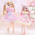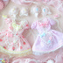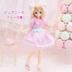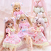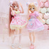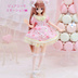 ふわふわのお菓子みたいなカラーのマカロンピンとワンピースのセットです。 スカートの裾から見えるガーターリングもポイントです🎀 2個付けておだんこヘアに、1個付けで帽子にしたり、エプロンに付けてロゼット風飾りにしたりできます。 マカロンピンはマグネット装着タイプになっているので、付け外しが楽にできます。 (マカロン、エプロンのモチーフも一点一点丁寧に制作しました。 いちご柄の襟のフリルは手染めをしています。)