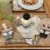 ちびぐるみサイズのお洋服です。 食べ物と一緒に撮ってあげるとぬいちゃんが「わたしが作りました」顔をしてくれます☺️ 【サイズ】 11cmぬい(ちびぐるみ) 【セット内容】 シャツ・エプロン・予備ボタン 【着脱仕様】 シャツ:マジックテープ エプロン:革紐ベルト どちらも背面で調節可能です。 【ご注意】 ・チェックの柄の位置は選べません。 ・ぬいの個体差により着用姿に差が生じる場合があります。 ・水洗いはしないでください。 ・ほつれは引っ張らず切ってください。 ・スカーフの先が上を向いてしまう場合、根元をアイロンで押さえることをオススメします。(制作時に押さえていますが、特に無地の生地はハリがあるため上を向きやすいです)