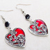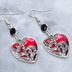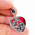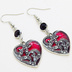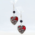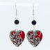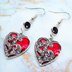 アンティークシルバー ゴシック調クリムゾンレッドのハートのピアス ラインストーンブラック サージカル可