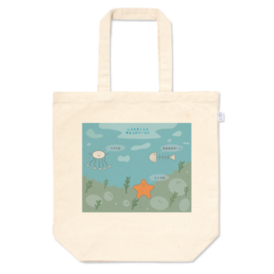 トートバッグ - M - プリント面積中ゆるふわオリジナルキャラクター 『しらたまくんとゆるふわワールド』 ゆるキャラさんで雑貨を制作しました〜☺️ 第2弾は・・・トートバッグです!! 今回は、海の中がテーマ✨️ ヒトデがモチーフ「ヒトデ氏」 クラゲがモチーフの「クラゲ氏」 魚の骨がモチーフの「ほねほねボーン」 この商品はpixivFACTORYで作られた商品です。サンプル画像は完成イメージのため、実物と異なる場合があります。