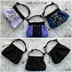 size 約20cm(金具含む)手が入る部分は約14.5cm ▼江戸三作のイメージで仕立てました。 ショルダーとは別の刺繍リボンでラメとスパンコールが光の具合でシルバーに見えるシンプルなデザインで制作しました。 ・腕に馴染みやすい細身黒 ・存在感のある太身紫 の二種でご用意しております✨
