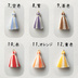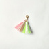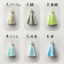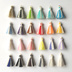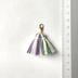 しましまのタッセルを2つ組み合わせたチャームです 写真と下 ↓ の色番号を参考に お好きな色をお選びください タッセルはベースの白がふわっとしたコットン、 カラーの糸は やや光沢のあるポリエステルの 雰囲気の違う2種類の糸を使っています ※カラーの糸は写真よりもう少し光沢が強めのイメージです ※実物の色になるべく近づくよう調整していますが ディスプレイや光源によって色味の異なることがあります 素材:糸(綿、ポリエステル)、金属パーツ 全長:約 4.5 cm タッセル長さ:約 3 cm カニカン(取付金具)の開く幅は 2mm くらいです。 --------- ※金属を使用しています。金属アレルギーの方はご注意ください ※ハンドメイドのため、個体差があります ※簡易包装での発送となります --------- タッセルの長さ、ボリューム、カラー糸のその他の色、 金具の色・種類などの オプションを準備中です 写真の用意ができしだい追加します