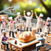 ミニチュア作業員とパン完成の瞬間|スマホ壁紙