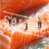 ミニチュア作業員とサーモンの輝く現場|スマホ壁紙