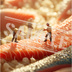ミニチュア作業員と極上サーモンの筋入れ作業|スマホ壁紙