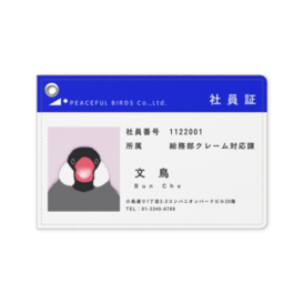 こちらは文鳥ver.の商品ページです。 鳥たちの社員証風パスケースになります。 通勤、通学のお供に。 本体サイズ(mm):70 x 105 材質:合成皮革 印刷方式:UVインクジェット印刷 ※この商品はpixivFACTORYで作られた商品です。サンプル画像は完成イメージのため、実物と異なる場合があります。