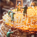 ミニチュア作業員と巨大ケーキの蜜塗り作業|スマホ壁紙