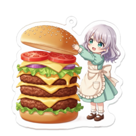 この商品はpixivFACTORYで作られた商品です。サンプル画像は完成イメージのため、実物と異なる場合があります。 女の子が、自分の背よりも高いトリプルハンバーガーを一生懸命仕上げています。チーズ、レタス、パティ…そして最後のバンズをそっと乗せる!あと少しで完成。 A little girl is putting the final touches on a towering triple-layer burger—taller than she is! With cheese, lettuce, and juicy patties stacked high, she carefully places the top bun with full concentration. She's almost done, and her determined expression makes you want to cheer her on!