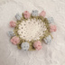 1/12サイズのドールや10~20cmのぬいぐるみが立てる・座れるお花のコースターになります。 花の色はピンク×水色、葉っぱの部分は在庫の関係上薄緑〜濃い緑間で、写真と色味が変わることがあります。 花の中にパールビーズが入っているため、花の形が崩れにくくなっています。 編み方の仕様上、葉の部分が丸まりやすいです。アイロンなどをかけて頂けますと綺麗に整います。 オマケとしてコースターにリボンを掛けています。そのまま広げて結んでいただいても、リボンを引っ張って花束のようにまとめてもらっても。勿論不要でしたら抜いてもらっても構いません。 全て同じように編んでいますがお使いのブラウザにより、実物とお色味が違って見える場合がございますがご了承ください。 ドールは付いてきませんのでご了承ください。 素人の手編み作品のため、糸始末が甘い部分があります、ご了承ください。