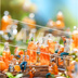 ミニチュア作業員とオレンジソーダの休憩時間|スマホ壁紙
