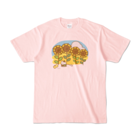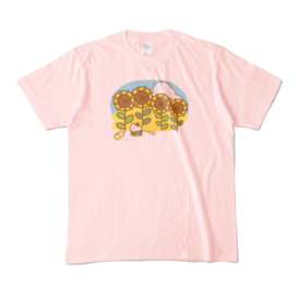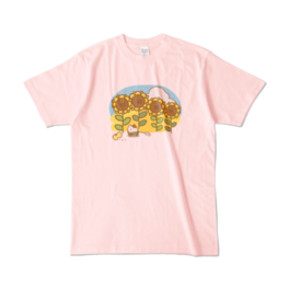 カラーTシャツ - XL - ライトピンク (淡色)ある晴れた夏の日。 ひまわりの中の、小さなハムスター。 手には小さな虫取り網、見上げる先には人間サイズの蝶々! 背伸びしても届かない、ふわりと舞う大きな蝶々。 それでもハムスターは一生懸命追いかけて… そして諦めた瞬間の一枚をTシャツのデザインにしました。