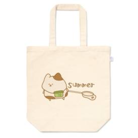 トートバッグ - M - プリント面積中ある晴れた夏の日。 ひまわりの中の、小さなハムスター。 手には小さな虫取り網、見上げる先には人間サイズの蝶々! 背伸びしても届かない、ふわりと舞う大きな蝶々。 それでもハムスターは一生懸命追いかけて… そして諦めた瞬間の一枚をTシャツのデザインにしました。