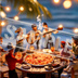 ミニチュア作業員と海辺のパエリアナイト|スマホ壁紙