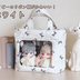 ●10cm中韓ぬい2~3体とおでかけできるぬいバッグです。 ※バッグのみの販売です。撮影に使用したぬいや小物等は付属しません。 【本体】高さ 約19cm × 幅 約21cm × マチ 約10cm 【窓】縦 約11.5cm × 横 約16cm (多少の個体差あり) ●ファスナー蓋 ぬいの紛失・盗難防止に。 金具がぬいの髪やケモ耳になるべく引っかからないよう、開けると上に向くように縫製しました。 ●2way仕様 両サイドにDカンを付けてあるので、お好みのストラップを付けてショルダータイプで使っていただけます。(ストラップは付属しません。) ●仕切りポケット 真ん中に仕切りポケットがあり、ぬいと持ち物をしっかり分けられます。 ファスナー付きなので、貴重品やぬい用の小物なども安心です。 ぬいの背景としての役目も果たしてくれます。 ---------- ▲素人のハンドメイド作品です。 ・既製品のような精度や強度はありません。 ・使用している生地は色落ち対策として水通しをしておりますが、長時間の使用や濡れた状態での使用等はお取り扱いにご注意ください。 ・商品画像は閲覧環境により実際の色味と異なって見える場合がございます。 ・ご理解の上ご購入をお願いいたします。 ▲猫を飼っています。 毛の混入等注意を払ってはおりますが、アレルギーや神経質な方はご購入をお控えください。 ▲転売・解体・自作発言は禁止です。