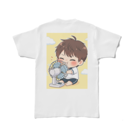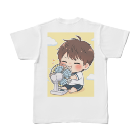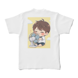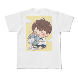 暑い夏の日、一番涼しい場所は扇風機の前! そんな懐かしい記憶がよみがえるような、キュートな男の子がプリントされたTシャツです。 扇風機の風を一身に浴びて、至福の表情を浮かべる姿に思わずにっこり。見ているだけで心が和みます。 柔らかな肌触りのTシャツは、普段使いはもちろん、おうちでのリラックスタイムにもぴったり。 これを着れば、暑い日も少し楽しく過ごせるかも? あなたのお気に入りの一枚に加えて、爽やかな夏をお過ごしください。 サイズ展開: S〜XL 素材: 綿100% 印刷方式: インクジェットプリント この商品はpixivFACTORYで作られた商品です。 掲載されているサンプル画像は完成イメージのため、実物と異なる場合があります。 Remember those hot summer days when the best spot in the house was right in front of the fan? This adorable T-shirt captures that nostalgic feeling perfectly with its cute illustration of a boy blissfully enjoying the cool breeze. His happy, content expression is sure to bring a smile to your face and a touch of soothing comfort to your day. Made with a soft touch, this T-shirt is perfect for everyday wear or for relaxing at home. It might just make those hot days a little more enjoyable! Add this charming piece to your wardrobe and breeze through summer in style. Available Sizes: S to XL Material: 100% Cotton Printing Method: Inkjet Print This product is made using pixivFACTORY. Please note: The sample image shown is for illustrative purposes and the actual product may differ.