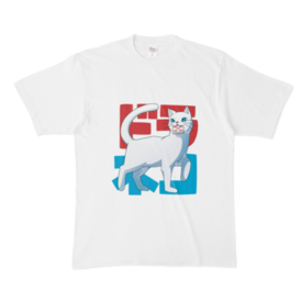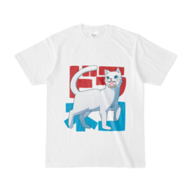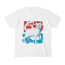 Tシャツ - XL - 白赤ドラの五索を盗んだ白いドラ猫のTシャツです。 ※白猫(役牌の白を面子で持ってる人)が、赤ドラの五索を副露して盗んでいく様子から着想を得ました。 この商品はpixivFACTORYで作られた商品です。サンプル画像は完成イメージのため、実物と異なる場合があります。