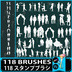 この人物シルエットブラシセットには、118種類のポーズとシーンが収録されています。カップル、家族、高齢者、子供など、様々な人物のシルエットが収録されており、デジタルアートやイラストの表現に最適です。人物のシルエットを簡単に挿入できるため、感情やストーリーを伝える作品作りに大変便利です。様々なシーンやポーズを自由に使い、作品に活気を与えてください。
