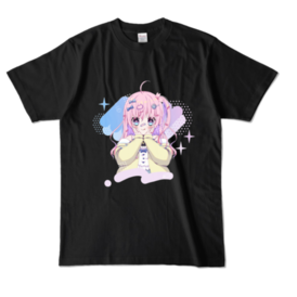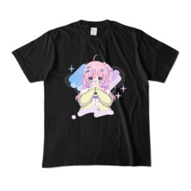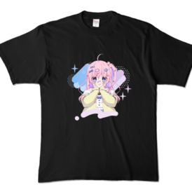 カラーTシャツ - XL - ブラック (濃色)猫桜ゆう 配信活動1.5周年の記念Tシャツです。 こちらはデコラverのみ。 部屋着に是非! この商品はpixivFACTORYで作られた商品です。サンプル画像は完成イメージのため、実物と異なる場合があります。