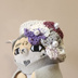 ぬいぐるみさんのベレー帽です。あじさいをイメージしたかざりがついています。 少しラメの入った糸で可愛く仕上げました。 ゴールデン力ムイどうぶつフォーゼサイズだとベレー帽。10センチぬいサイズだとすっぽり帽子になるくらいのサイズです。 あじさいの飾りはミックス糸で編んでおります。糸の色の出方の違いでひとつひとつ紫陽花の色味が異なりますのでご了承ください。 モデルのぬいぐるみはつきません。着用見本として我が家の子たちに着せております。 編み終わりのいと始末のあと、ほつれ防止で裁縫用接着剤でとめております。今回はあじさいを縫い付けておりますのでそのあとも接着剤でとめています。また裏側にはいとやたま止めが出ています。ご了承ください。