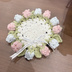 1/12サイズのドールや10~20cmのぬいぐるみが立てる・座れるお花のコースターになります。 お送りするのは画像1,2枚目になります。3,4はリボンをかけた状態や立ち姿の参考の為に載せており、内容物には含みません。 花の色はピンク×紫、葉っぱの部分は在庫の関係上薄緑〜濃い緑間で、写真と色味が変わることがあります。 (2枚目と3枚目を参照) 花の中にパールビーズが入っているため、花の形が崩れにくくなっています。 編み方の仕様上、葉の部分が丸まりやすいです。アイロンなどをかけて頂けますと綺麗に整います。 オマケとしてコースターにリボンを掛けています。(画像三枚目)そのまま広げて結んでいただいても、リボンを引っ張って花束のようにまとめてもらっても。勿論不要でしたら抜いてもらっても構いません。 全て同じように編んでいますがお使いのブラウザにより、実物とお色味が違って見える場合がございますがご了承ください。 ドールは付いてきませんのでご了承ください。 素人の手編み作品のため、糸始末が甘い部分があります、ご了承ください。