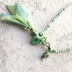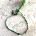 真鍮をすこし溶かして、たたいてBの刻印を打った部レートを 石に通しました。 留め金代わりに、ボタンカットのクリソプレーズを黄緑色のシルクリボンの輪に通します。 飾りにラフロックなエメラルドと、ペリドットのチップをつけました。 リボンは長めにしてありますので、短めのほうがお好みでしたら端をカットしてください。 淡いマットな色みの、緑~白のソーシュライトという石です。 最初は赤い石とあわせたいなぁ~という所から、緑系の石を探していて。 この石にたどり着きました。 うすい緑はこちらにして、濃いほうはバーダイトという石を仕入れて作ってみました。 2㎜の石ですので、とっても細いですし重ねつけも楽しいです。 発送までの日数が14日になっていますが、お支払い確認後 3日以内に発送いたします。 ネコポス¥310で発送いたします。 石:ソーシェライト ラウンド2㎜ クリソプレーズ エメラルド ペリドット 950銀&925銀 長さ:18㎝ 糸&リボン シルク