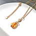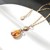 鍾離をイメージしたネックレスです。 メインには琥珀色のガラスに白銀色の箔があしらわれた欧州製のストーンを使用し、チェーン、留め具、アジャスターはk16gpのものを使用しました。 アジャスターの先端はコイン型のチャームになっています。 撮影状況やお使いの端末の設定等により、画像と実物の色合い等に違いが出る場合があります。 ご不明な点はお気軽にお問い合わせください。 チェーンの長さ:約45cm+アジャスター ガラスストーンの大きさ:約1.8cm 金具の色:ゴールド *ご注意* *素人によるハンドメイド作品です。 *ハンドメイド作品ですので、同じ品を複数ご購入頂いた場合でも少しずつ個体差がある場合があります。 *金属を使用しております。金属アレルギーの方のご着用はご注意ください。 *一つ一つ丁寧に作成しておりますが、既製品と比べて強度や完成度が劣る場合がございます。ご了承の上お取り扱いにはご注意ください。 *水濡れや直射日光の当たる場所に放置しますと劣化が早まる恐れがありますのでご注意ください。