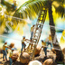 ミニチュア作業員とココナッツ収穫の浜辺|スマホ壁紙