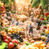ミニチュア作業員とジャングル果実仕分けセンター|スマホ壁紙