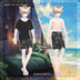 水着にも部屋着にも、普段着にでも使えるカジュアルな衣装セットです。 Tシャツ、男性用海パン(ハーフパンツ)、サンダルがセットになっています。 ModularAvatarで対応アバターならポン置きで着せられます。 TシャツOFF、サンダルOFFのアバターメニュー搭載! ※なるべく貫通や破綻をしないよう衣装を調整しておりますが、アバターによっては貫通対策シェイプキーが上手く使えない事があり、完璧ではありません。 貫通が過度に気になる方はご購入をお控えいただくか、ご自身でマスクテクスチャを作成するなどのご対応をお願いいたします。