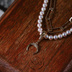 前回ご好評いただいたPerl×chainネックレスを新たに制作しました ※8/20パールサイズとチャームのデザイン変更 画像3枚目要確認 5mmのガラスパールをたっぷりと使い華やかなネックレスへ パールのサイズは小さくなりましたが華やかさは変わりません Instagramでもお伝えしましたが照り艶が本物と謙遜ない質です パールカラーの色の奥行きや虹色がとても美しいガラスパールを使用 三日月のチャームは24kgp仕様 取り外し可能なので好きな位置で止めたりお手持ちのチェーンに通してお使いいただけます ネックレス長さ58cm フックをかける位置でショートにもロングネックレスとしてもお使いいただけます