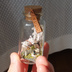 高さ約70mm 直径約30mm 主な素材・ビスマス、ガラス瓶、エポパテ、UVレジン ※注意事項 到着時の破損につきましては対応いたしますのでご連絡願います。 微に入り細に入り実物を見た際に見える細かな傷、 印象の違い、想像されていた色味との違い等 写真から判定できる明確な破損以外の事柄に関しては 対応できかねますのでご了承願います。 全て一点物になりますので個体差があります。 ガラス製品なので思わぬ衝撃で破損する恐れがあります。注意して取り扱ってください。 蓋のコルクは外れる恐れがあるのでアクセサリ等として使用することは絶対にお止めください。 収れん火災や劣化を避けるために直射日光を避けカビ予防のために高温多湿を避けて保管してください。 小さなお子様やペットがいるご家庭は誤飲にお気をつけください。 事故が起きましても責任を負いかねますので予めご了承ください。