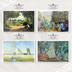 01:アルジャントゥイユの庭|1873年 02:モンジュロンの庭|1876年 03:晴れた日の野原|1874年 04:モレノ庭園のオリーブの木立|1884年 05:夏の野原|1875年 06:チューリップ畑と風車|1886年 07:アルジャントゥイユのモネの庭|1873年 08:日本の橋|1899年 09:シダレヤナギ|1918年 10:アルジャントゥイユの庭の散歩|1873年 11:ラヴァクールのセーヌ川、夕暮れ|1880年 12:ボルディゲーラの別荘|1884年 13:フォンテーヌブローの森の道|1865年 14:ヴェトゥイユの庭|1881年 15:ポプラの木|1891年〈01〉 16:ポプラの木|1891年〈02〉