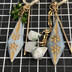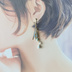いつかは作りたいと思っていた、双璧で対になるピアスです。こちらは久坂ヴァージョン。 高等なカットとカービングを施されたブルーオパールに、彼らの天にも地にも根付いた存在である「松」を、それぞれクロムダイオプサイトと、ツリーアゲートで飾りました。 久坂には二刀をイメージした、スティックチャームを追加しています。出会ってすぐの道場でボコボコにされたのが懐かしい。 今回もお色み確認用の近接写真を掲載しています。 ご確認ください。 キャッチ要らずで失くしにくい、デザインフックを使用しています。 使用パーツ ●ブルーオパール ●クロムダイオプサイト ●ツリーアゲート ●14kgfフックピアス ●14kgfチャーム ●14kgfワイヤー ●14kgf丸カン ●14kgfチェーン 金具変更 ●可 作り替え ●不可 おことわり ●可能な限り丁寧に制作しておりますが、素人のハンドメイド品です。市販品ほどの強度・完成度はございません。ご了承の上、優しく扱っていただけますと幸いです。 ●14kgf、サージカルステンレスは、ともに金属アレルギーが出にくいとされる素材ですが、すべての方にそれが保証されるという訳ではありません。異常を感じられた場合は、すぐ、ご着用をお止めください。 ●天然石を用いているため、作品はすべて一点ものです。いずれも完全に同一デザインでの再販は難しいこと、あらかじめご了承くださいませ。