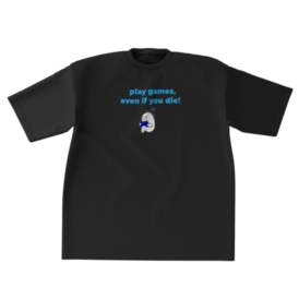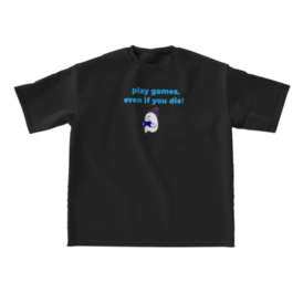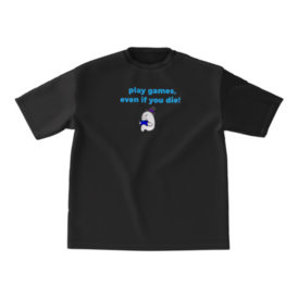 ビッグシルエットTシャツ - XL - 正面某ベーシストのハロウィン配信用にデザインしたキャラクター。 配信で使用されなかったイラストをTシャツ化しました。 配信主がゲームする時の癖である体育座りをしています。 英文の意味は「死んでもゲームする!」 この商品はpixivFACTORYで作られた商品です。サンプル画像は完成イメージのため、実物と異なる場合があります。