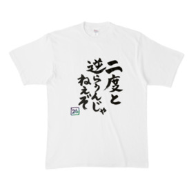 紫翠にむの名言(?)「二度と逆らうんじゃねぇぞ」を本人が習字したデザインがプリントされたTシャツです。 配信アプリREALITY内の「オリジナルTシャツイベント」で実装したデザインとおそろいです🎶