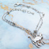 シルバーカラー 歩き猫のダブルチェーンブレスレット ビーズ付チェーン アジャスター付