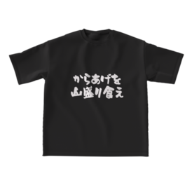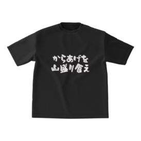 オーバーサイズTシャツです! からあげを食べましょう 黒Tだけなんか制作コスト高いみたいだ… この商品はpixivFACTORYで作られた商品です。サンプル画像は完成イメージのため、実物と異なる場合があります。