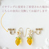 ****** * こちらはイヤリングへ変更可能商品です * ***** 購入時にご連絡いただければ、イヤリング金具に 変更してお送りいたします。 ************************************************************ 白い花と実が爽やかな、 レモンの木の枝のようなデザインのピアスです🍋 レモンの実はプラスチック製。 ピアスフックから下がった部分の長さ 3 cm レモンの実の部分の大きさ 1.4 cm x 1 cm ☆ お箱に入れ、リボンをかけてお届けいたします ☆ 当店のフルーツアイテム一覧はこちらから https://roserain.booth.pm/item_lists/rw9TQdjn ………………………………………………………………………………………… 当店の商品配送方法は、対面手渡しで追跡番号付きの 郵便局のレターパックプラス(520円)のみとなっております。 発送後、追跡番号とお届け予定日をお知らせいたします。 ***発送は土日祝はお休みとさせていただきます*** …………………………………………………………………………………………