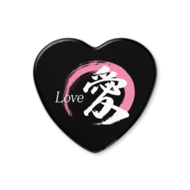 「愛」筆文字ハート缶バッジ
