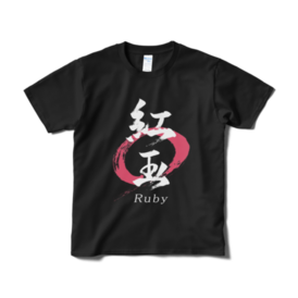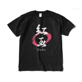 「紅玉/Ruby」筆文字Tシャツ(黒)