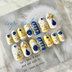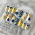 あんスタ " fine-O Dawning Angels “の衣装をモチーフにしたネイルチップセットです。 *レギュラーオーバルサイズのチップを使用しています *7サイズ、14ピースセットになっております。ネイルグミ2枚をセットにしてご送付いたします。 *色味が写真と異なる場合がございます。 *ハンドメイド作品です。 *既製品のような完璧なお品をお求めの方はご遠慮ください。 *注意しておりますが小さなチリや、気泡が入る場合がございます。ご了承ください。 *ご購入者様の爪のサイズに合わせやすいように、7サイズにしておりますが個人差がある為合わない可能性もございます。ご承知おきください。 制作素材:ジェルネイル、パーツ他 ***着画等のUP大歓迎です♪***
