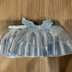 煌めくオーガンジーの 大天使ドレス(ライトブルー) 1点ものドレスです アイドリッシュセブン モンぬい 背中にメンバーカラーのライトブルーの羽をあしらい、 煌めくオーガンジーに、たっぷりギャザーのサテン ウェストベルトには銀色のバラの箔押し とても華やかな、モンちゃんサイズのドレスです スカートの素材が、しっかりしていますので、自立します。 サイドがマジックテープになっていますので、サイズ調整が可能です ぽっちゃりモンちゃん、小柄なモンちゃんでも着用可能です。 衣装は二次創作です 素人のハンドメイド作品です 拙いところもありますが、ご容赦くださいませ ミシン、手縫い、手芸用ボンドなどを使っております お洗濯はお控えください 素材そのものの継ぎ目がある場合がございます 着せ方のコツ アゴの下に、前中央を合わせて、腕の下を通して 引っ張り気味にサイドのマジックテープをとめてください 最後に背中の中心に羽がくるように整えてください モンちゃんに、「お似合い」、「可愛い」などお声かけしてください♡ ※1点ものは頒布が1点のみです。作者の手元に試作品は残ります。 (試作品は頒布されません)
