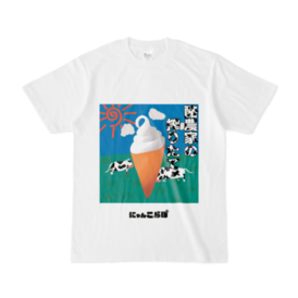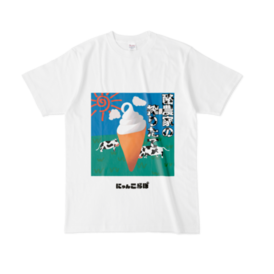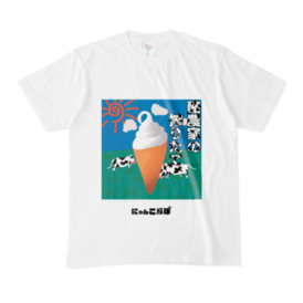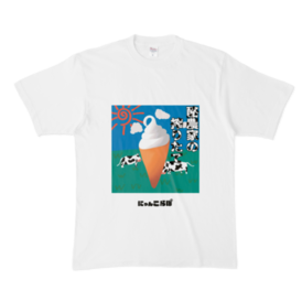 Tシャツ - XL - 白《商品説明》 商品名 搾りたてソフト🍦 Tシャツ 制作者 黄昏ヴォルフ(にゃんこらぼ) 《つくり手さんから》 ソフトクリームに風情を足すために酪農牧場の背景をイメージした