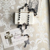 オニキス丸珠をベースにしたロザリオ。センターは「主のみこころ」と呼ばれる茨に巻かれた心臓のモチーフで、キリストの受難を表しています。主の祈り部分はコッパー色の薔薇ビーズ。クロスも少し重めのバランスにして、存在感はあるけれど華美さを廃したデザインにしました。 男性でも持ちやすいようにとこういうデザインをつくりますが、日ごろユニセックスな服しか着ないという女性の方に手にとっていただくことも多いです。 ※オニキスの丸珠はある意味スタンダードの中のスタンダードといった珠選びのため、個人的なこだわりでこの珠を使ったロザリオは同じデザインをつくらないことにしています。結果的に一点ものになります。 お祈りのためのロザリオと同仕様で、カンの類は一切ついていませんが、そのまま首に掛けることができるサイズです。 メダイつきで中が二室に分かれたアクセサリーポーチが付属します(メダイのデザインは選べません)。