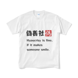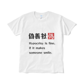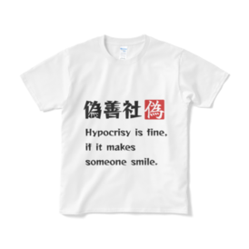「偽善だっていいじゃない」Tシャツ 偽善社+英語バージョン