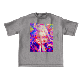 ビッグシルエットTシャツ (グレー) - XL -このTシャツは、夢のようなパステルカラーの髪が広がる可愛らしいプリンセスをモチーフにしたオリジナルデザインです。頰杖をついた少女の神秘的な視線と、虹のように輝くヘアスタイルが、日常をファンタジーの世界に変えてくれます。柔らかなピンク、ブルー、パープルのグラデーションが織りなす優しい色合いが、着る人を優しく包み込みます。 色は白、黒、グレーをご用意してます。 この「パステルヘアプリンセス Tシャツ」を着て、毎日のファッションに魔法をプラスしましょう。限定デザインなので、お早めにどうぞ! この商品はpixivFACTORYで作られた商品です。サンプル画像は完成イメージのため、実物と異なる場合があります。