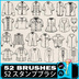 ProcreateとPhotoshop用の52種類のシャツと襟のデザインブラシセット - 服のスケッチ、トップス、ビジネスウェアの素材
